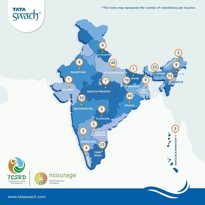 Mumbai: Ncourage Social Enterprise Foundation, a subsidiary of Tata Chemicals, funded by the Tata Chemicals Society for Rural Development (TCSRD) is constantly making efforts to improve access to clean and safe drinking water in remote areas of the country. Continuing with its effort, Ncourage has installed 260 'Tata Swach Tech Jal’ water purification units till date. The foundation collaborated with partner organisations, to install these community-based purifiers, which are now benefitting around 18,000 families across 20 states in India.